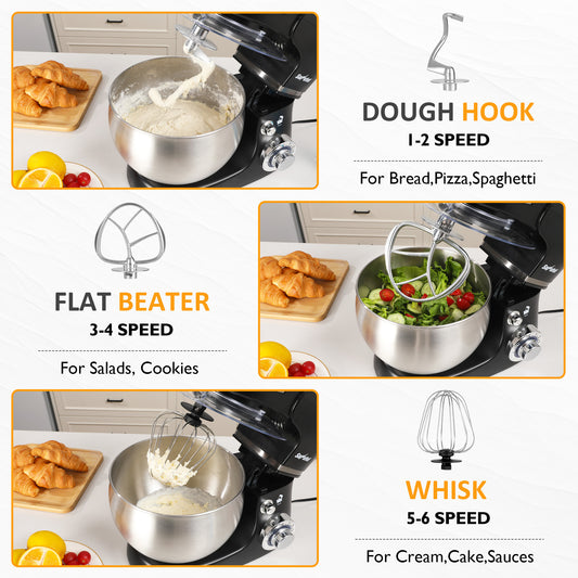 Sunvivi 3-in-1 Multifuctional Stand Mixer: 400W Kitchen Electric Mixer with 6 Speeds, Tilt-Head, 6.5QT Dough Mixer Machine