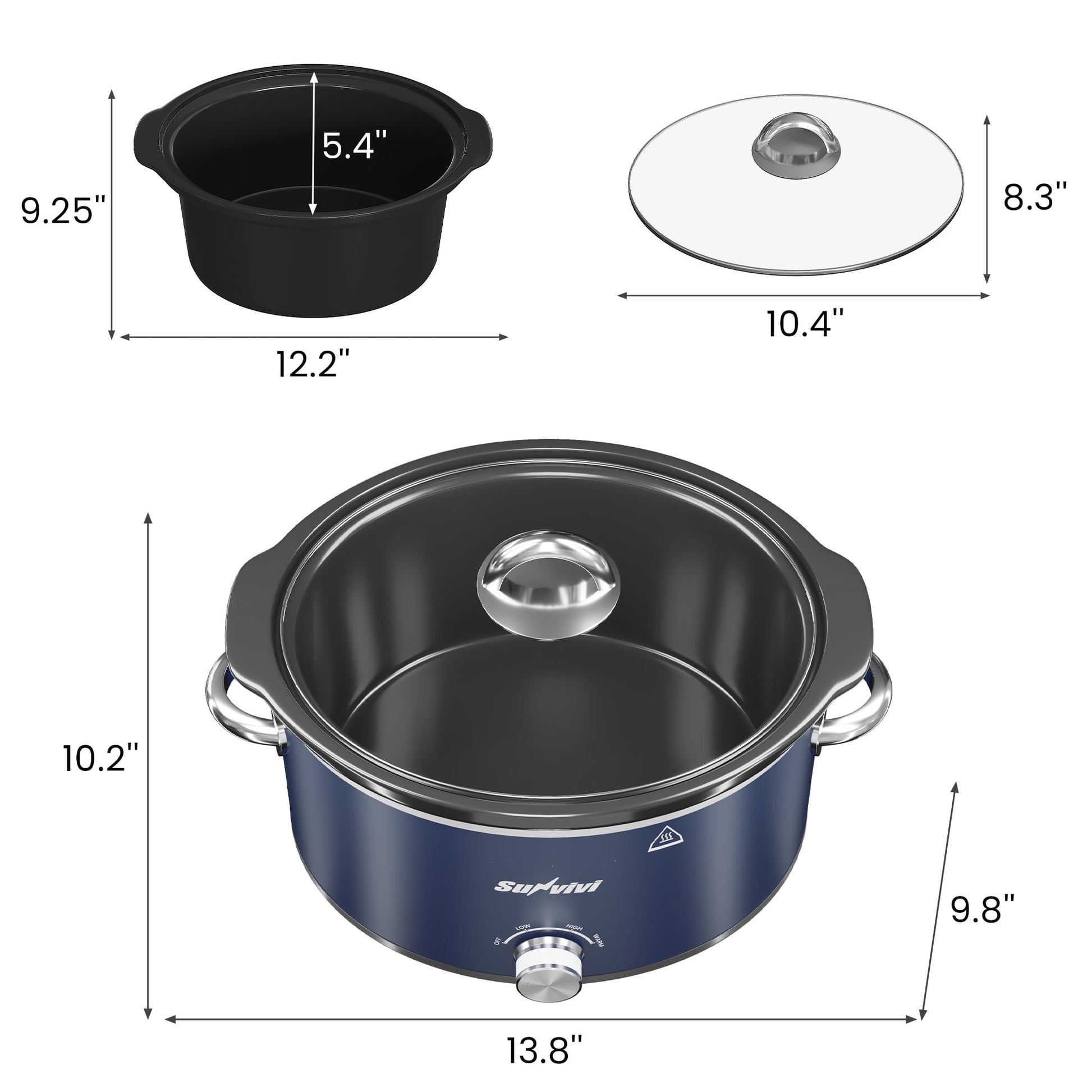 Sunvivi 4QT Compact Slow Cooker & Food Warmer with 3 Temperature Settings, Removable Ceramic Pot, Dishwasher-Safe Glass Lid, Stainless Steel - Blue
