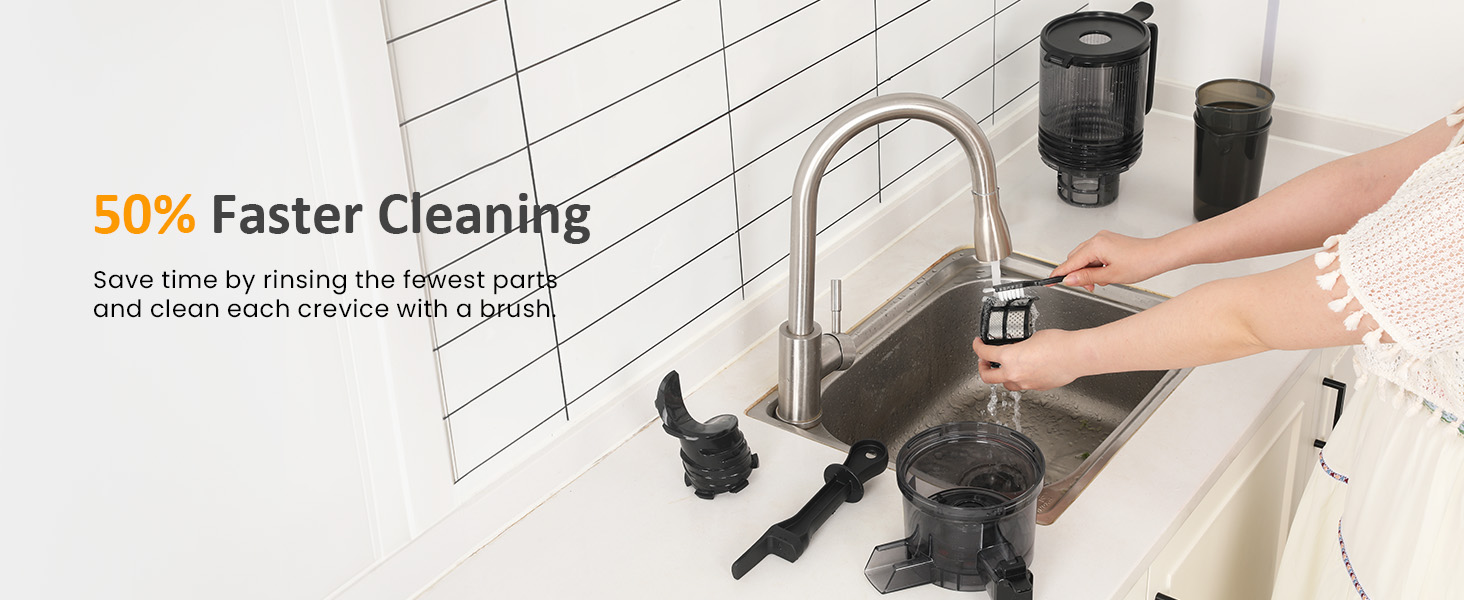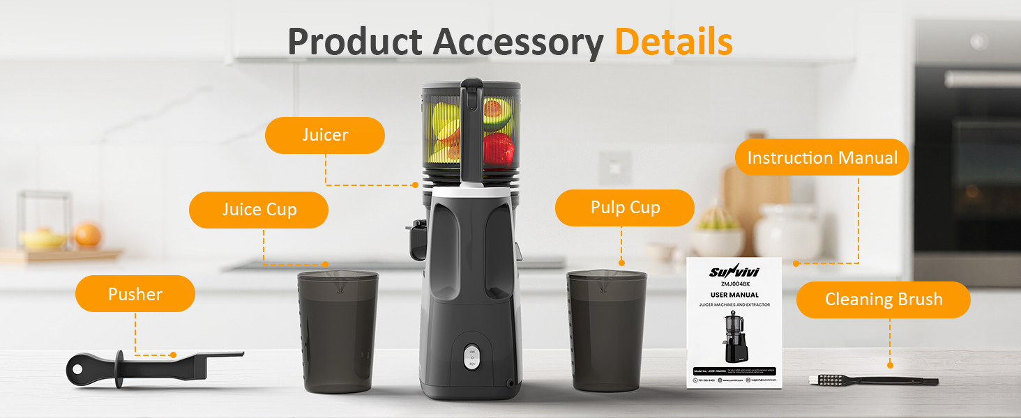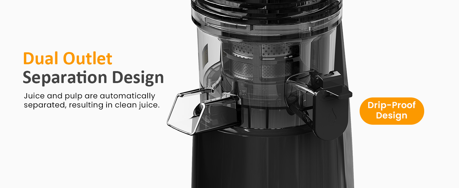 • Dual Outlet Design, Easy Separation: The juice and pulp automatically separate into their respective containers, ensuring pure juice extraction that's more convenient and cleaner. The anti-drip nozzle keeps your kitchen countertop tidy, making pouring the juice effortless.