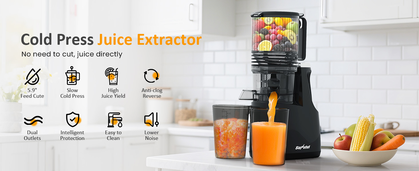 Sunvivi Cold Press Juicer with 5.9" Wide Feed Chute, 250W Slow Juicer Machines Fit Whole Vegetables & Fruits