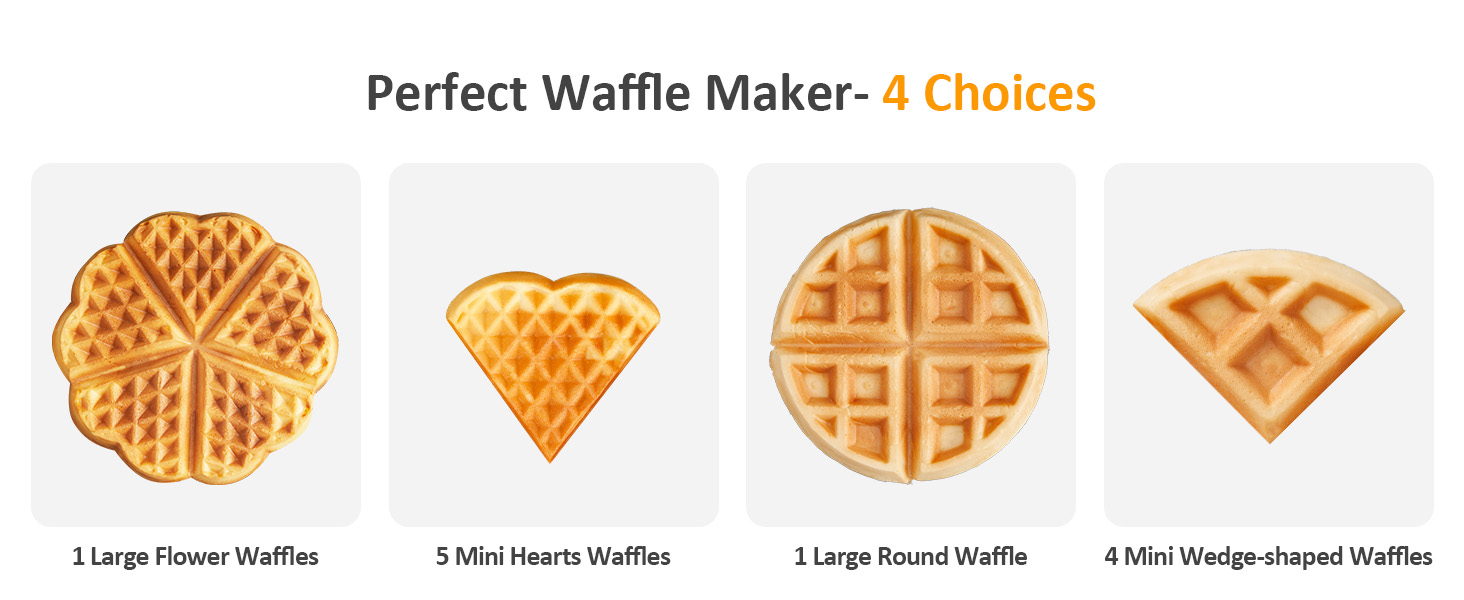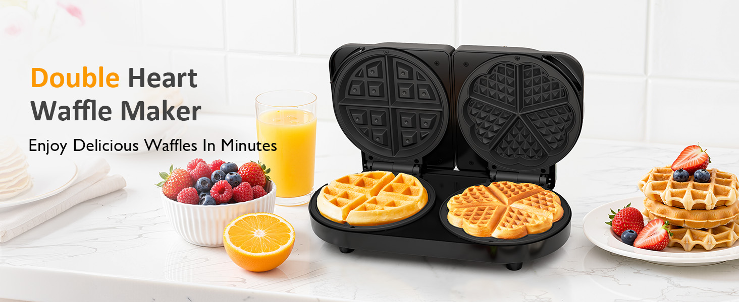 • Dual-Shaped Griddle Plate: One side features a cute heart shape, while the other side offers a classic round shape, giving you more creative options for breakfast. Kids will love the adorable design, while parents can enjoy the traditional taste. One machine satisfies the preferences of the entire family. Whether it's for Valentine's Day, family bonding time, or a regular morning, you can easily bake waffles in different styles.