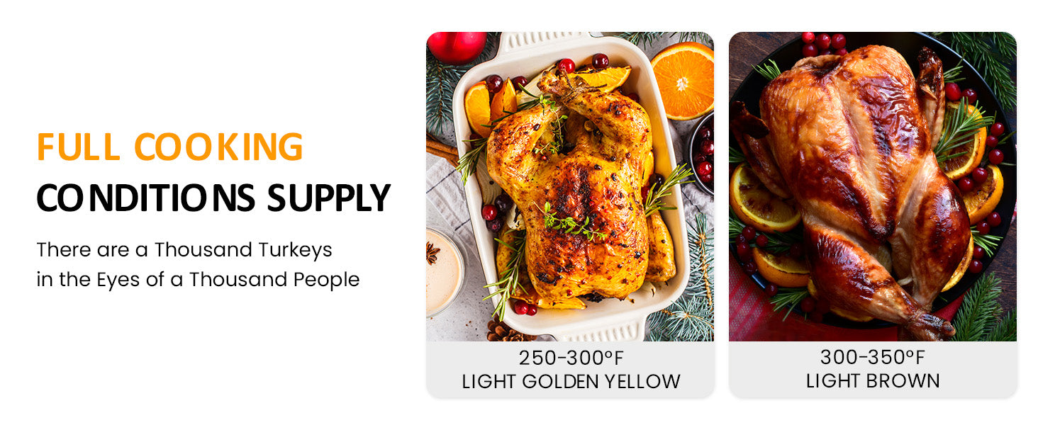 Precise Temperature Control: The turkey roaster offers an adjustable thermostat ranging from 150-450°F, ensuring even heating. With the easy-to-use temperature settings, you can quickly defrost frozen turkey and keep dishes warm.
