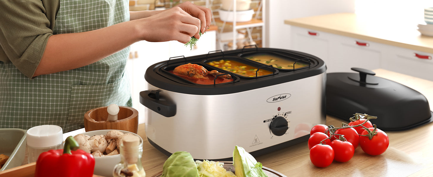 Sunvivi Turkey Roaster with 3 Separate Buffet Server Trays (18-20QT)