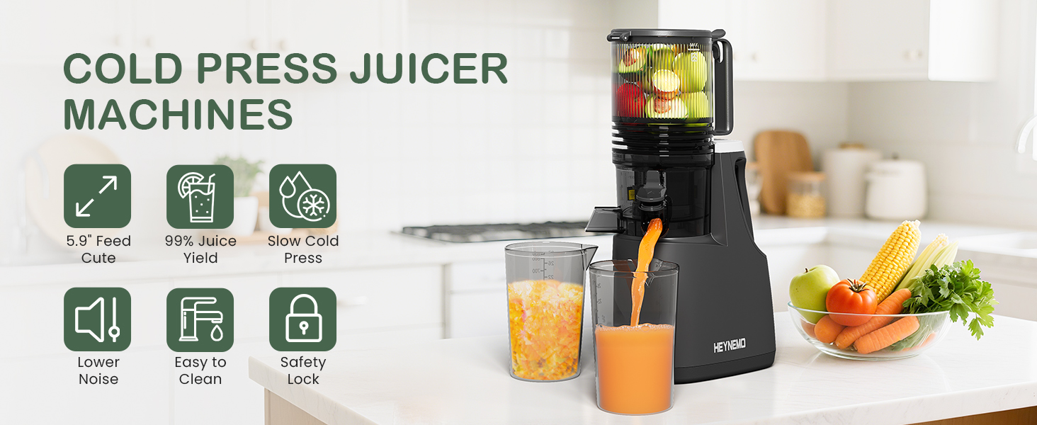 • Cold Press Tech for 98% Juice Yield & Maximum Nutrition: With 55 RPM slow squeezing, this juicer minimizes oxidation and heat, preserving active enzymes and vitamins. Delivers up to 98% juice yield with smooth, pulp-free results.