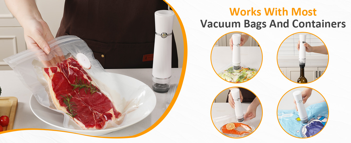 • Compact & Rechargeable Handheld Design:Weighing just 0.52 lbs, this mini vacuum sealer is portable, lightweight, and perfect for on-the-go use. Equipped with a 1200mAh rechargeable battery and USB charging, it's ideal for home kitchens, camping trips, or travel meal prep. The cordless design makes it a flexible and clutter-free kitchen gadget for modern food storage.