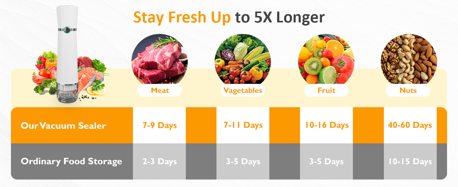 • Perfect for Home, Kitchen, or Travel:This food preservation system helps reduce spoilage and prevent freezer burn by removing excess air and sealing in freshness. Great for extending shelf life of meat, fruits, vegetables, and more. Ideal for families, meal preppers, or anyone who wants to cut down on waste and keep food tasting great longer.