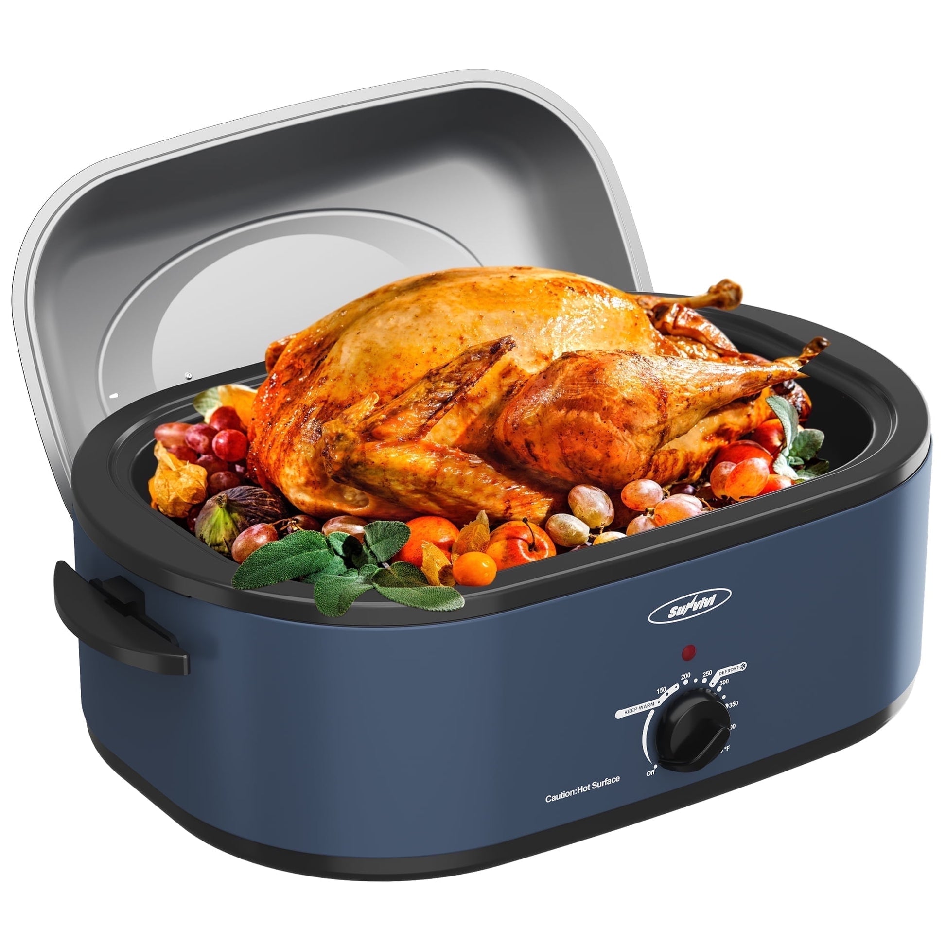 Sunvivi Roaster Oven with Self-Basting Lid, 18qt Electric Roaster with Removable Pan & Rack, Turkey Roaster Oven with Defrost & Warm Function, Stainless Steel, Blue