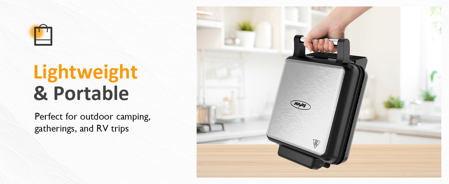 • Compact and Portable: This convenient waffle maker is not only perfect for cooking in your home kitchen but also ideal for outdoor camping, parties, gatherings, RV trips, and more. Its compact size makes it an excellent choice for apartments, dorms, offices, and small kitchens with limited countertop space.